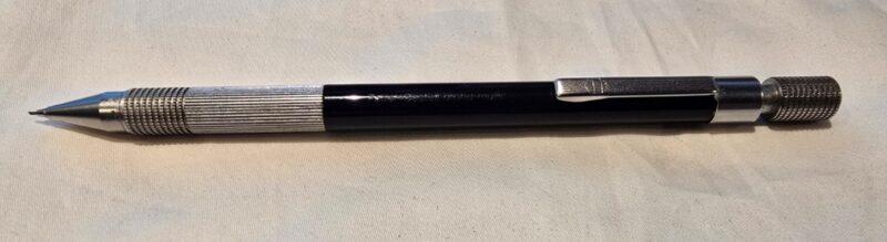 Het potlood oogt nog goed maar is gebruikt; de letters op de body zijn iets vervaagd. Het voelt uitermate degelijk aan.